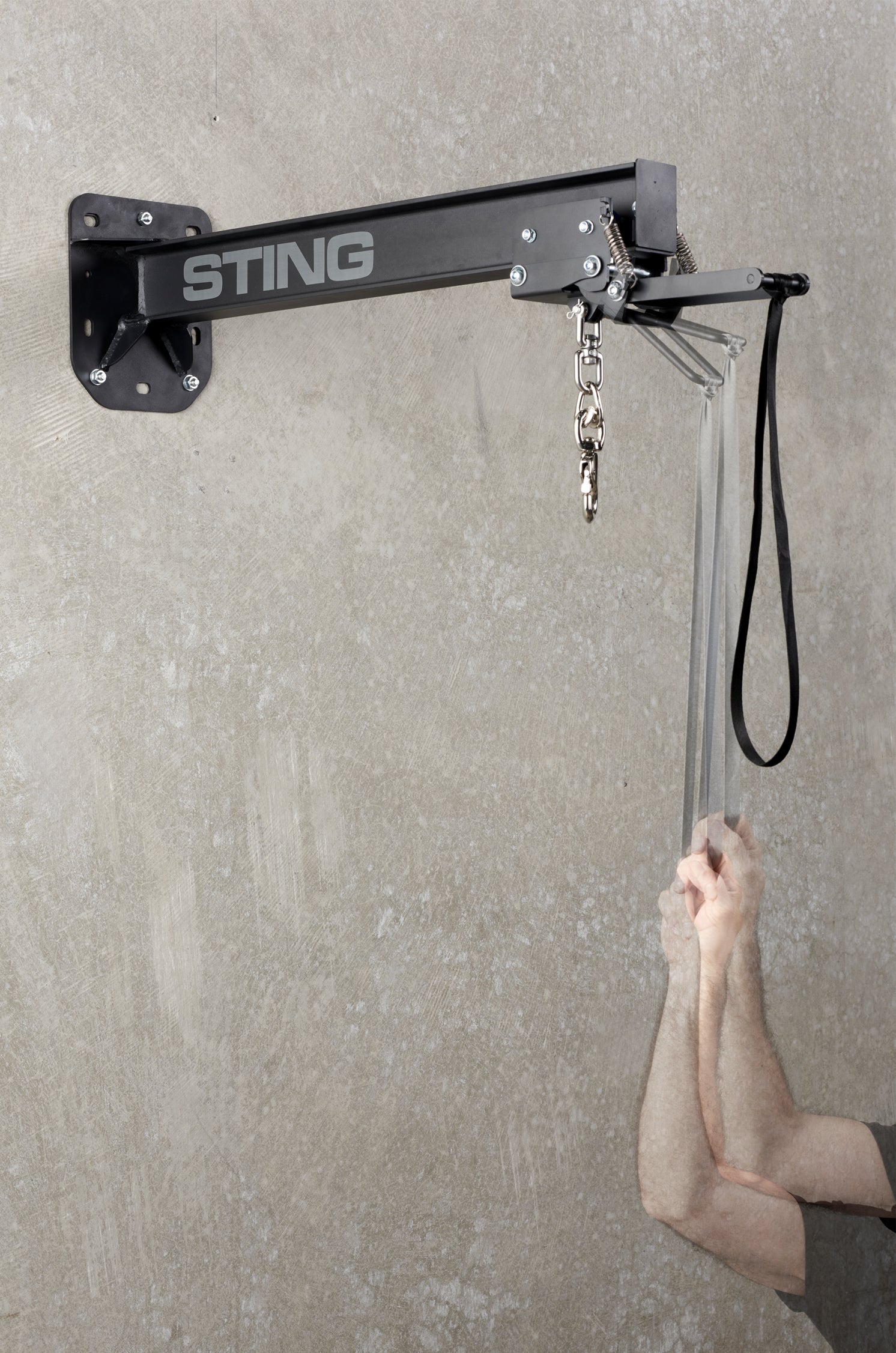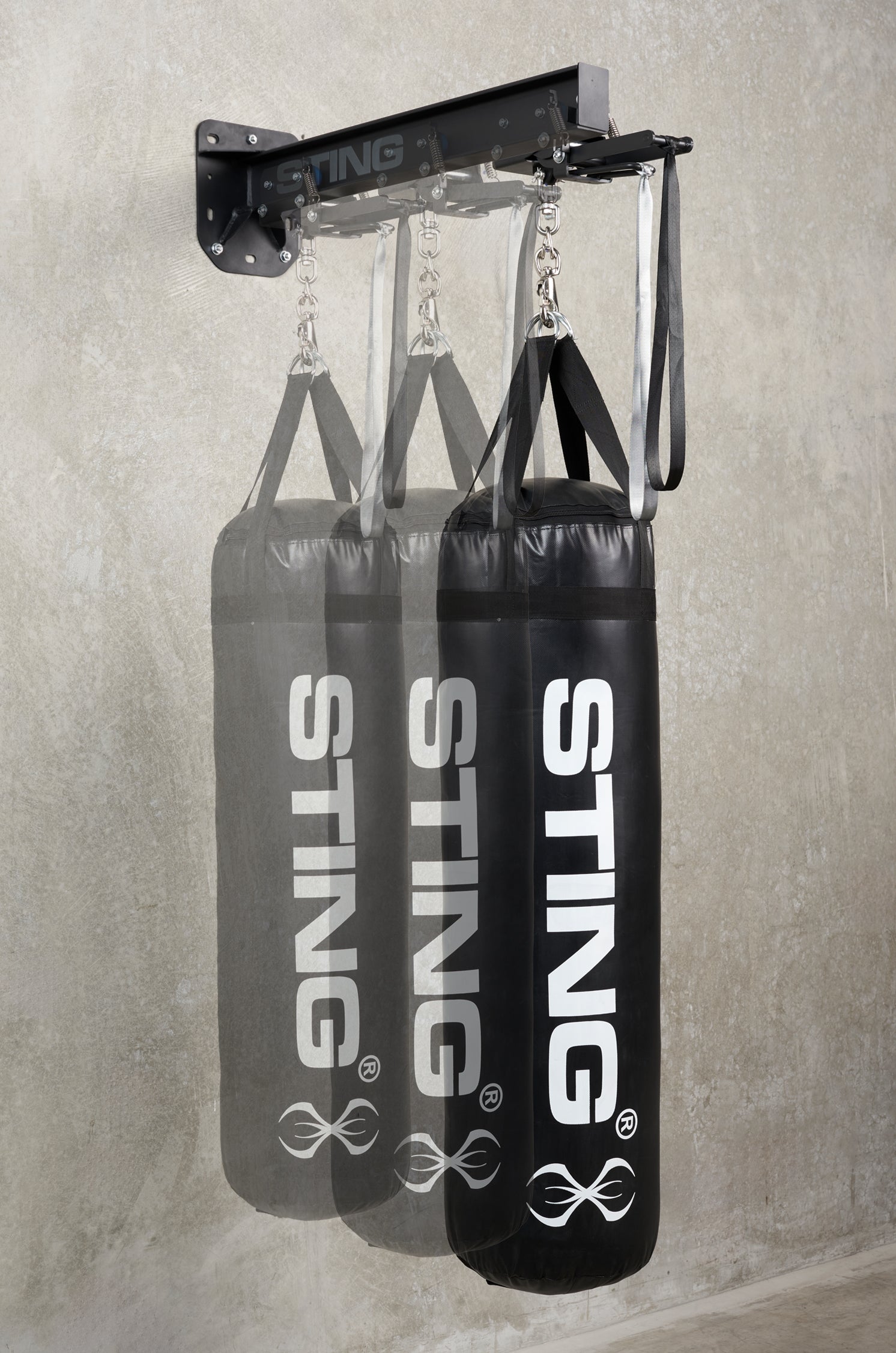 The 90cm deep arm provides ample distance from the wall, allowing 360-degree movement around the bag during workouts. A rotating ring prevents chain twisting during use, ensuring a smooth, uninterrupted session every time.